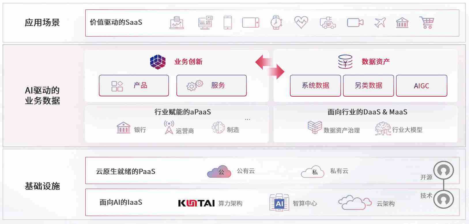 数字时代,,围绕企业数字化转型的关键要素,,,,壹号平台数码开创性的提出数云融合战略和技术体系框架,,着力在云原生、、数字原生、、AI原生和信创产业上架构产品和服务能力,,为处在不同数字化转型阶段的快消零售、、、汽车、、、、金融、、、医疗、、政企、、教育、、、运营商等行业客户提供泛在的敏捷IT能力和融合的数据驱动能力,,,,构建跨界融合创新的数字业务场景和新业务模式,,,助力企业级客户建立面向未来的核心能力和竞争优势,,全面推动社会的数字化、、、智能化转型升级。。。