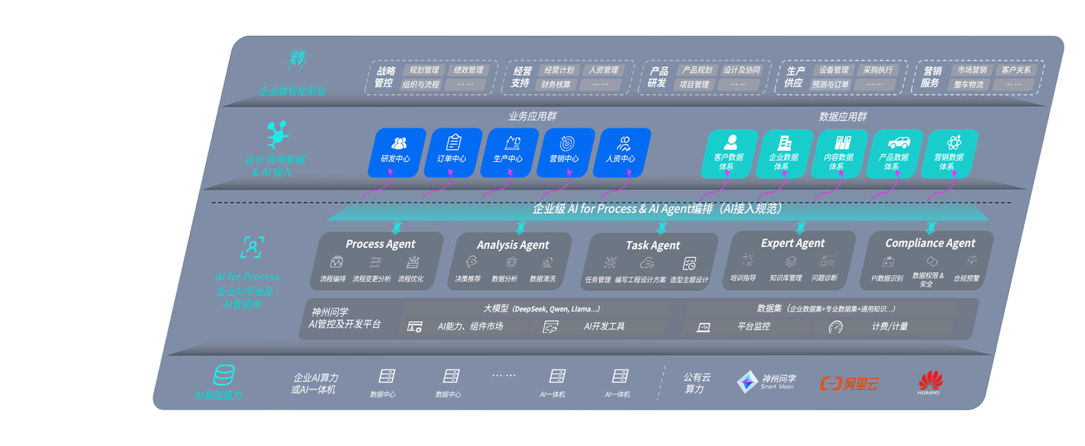 壹号平台问学智车解决方案是一套基于AI技术的汽车行业智能化系统,,覆盖从底层算力到顶层AI应用的全栈方案。。。。方案由算力层、、、模型层和应用层组成:算力层,,方案支持多种一体机配置,,,,具备云端灵活部署、、、、多云适配以及动态优化计算资源的能力;模型层,,壹号平台问学平台版提供了企业级AI应用一站式构建与管理平台,,,,支持基于后训练强化技术的汽车企业专属模型的训练、、、、评测和运营;应用层,,,,壹号平台问学DeepSeek版提供包括超级员工、、智能招采、、、、智能营销、、、智能客服、、AI for BI等一系列解决方案,,,,可助力汽车行业实现数字化转型,,让管理更智能、、、响应更敏捷。。。